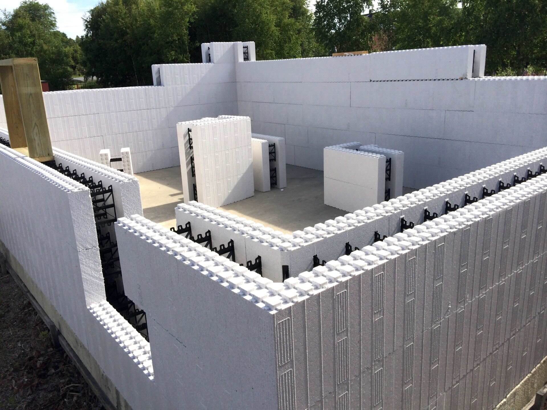 Insulated Concrete Formworks (ICF) are modular blocks that act as the final insulation for the concrete foundation wall and also as the form work to pour the liquid concrete. The value of this, of course, is that no additional form work labor is required. Once the foundation is laid out with these blocks, they stay in place permanently. The downside is that these ICF blocks typically are made out of foam. In a high performance world this gets the job done, but in a multifaceted intersectional world that we live in it causes more harm to use a petroleum based insulation material.